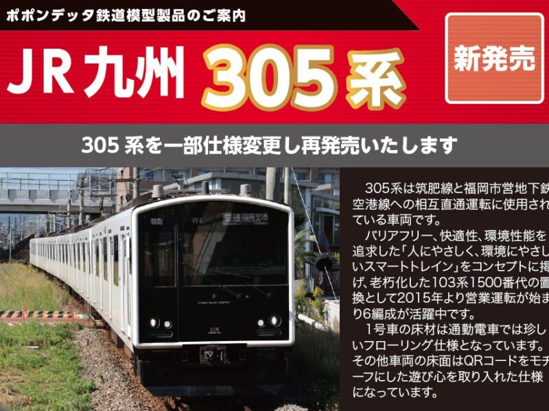 発売予定 JR九州305系 by poponPosted on2026-02-022026-02-06 2026年2月4日更新305系を一部仕様変更し再発売いたします「地下鉄線内ワンマン」シール撤去後、前照灯白色化後の姿を再現します。品番 6128商品名 JR九州305系… Share this... Facebook Twitter Pinterest Read More